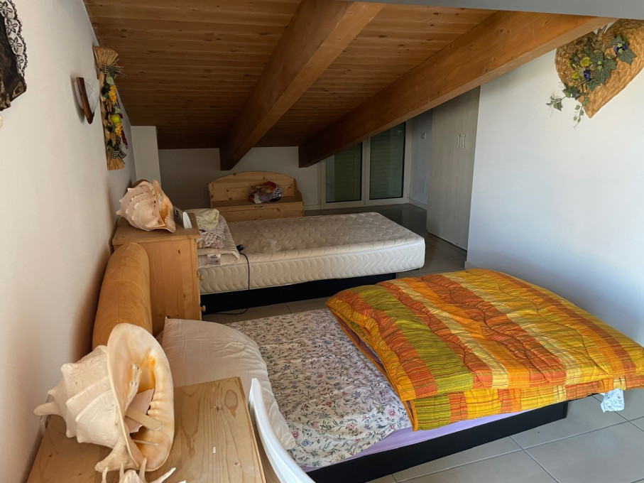 Ampia scala comoda in legno per salire al quinto piano mansardato dove troviamo un’ampia camera letto con due letti singoli ed armadio, un bagno finestrato, ampio balcone con comodo terrazzo vista mare completo di tavolo e sedie.