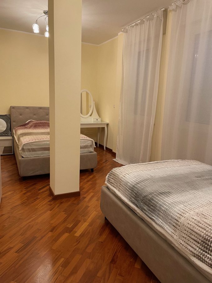Questo gioiello residenziale al primo piano, accessibile tramite ascensore di ultima generazione, si distingue per i suoi interni sofisticati con pavimentazione interamente in legno pregiato. La disposizione funzionale comprende un ingresso accogliente, un ampio soggiorno luminoso, una cucina completamente attrezzata, due confortevoli camere da letto e un elegante bagno.