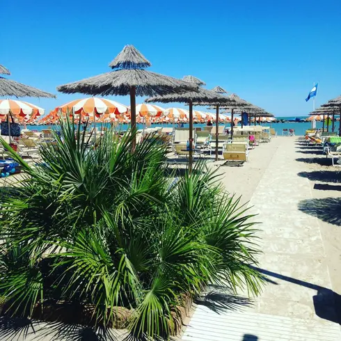 Sabbia pulita, ombrelloni colorati, lettini, bar perfettamente attrezzati per la più piacevole vacanza in riviera.