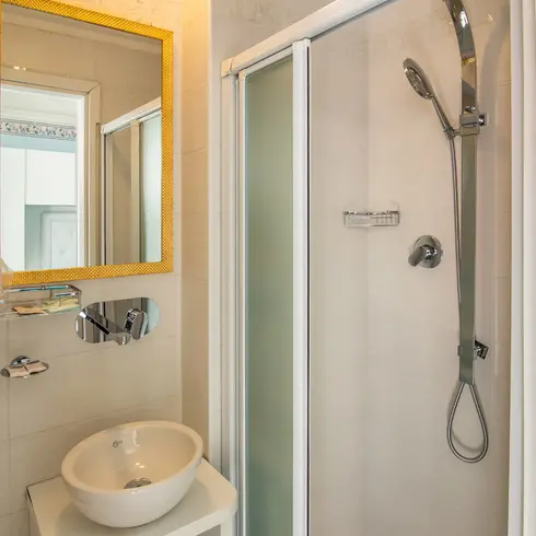 Tutte le camere sono dotate di: Aria condizionata, Balcone, Servizi privati, Box doccia, Phon, Telefono diretto, TV Sat, Cassaforte digitale.